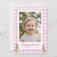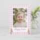 Celebre a Páscoa com um toque doce e pessoal com este cartão de foto de Feliz Páscoa, apresentando um design de xadrez em aquarela rosa suave e adoráveis acessórios de coelhinho bebê. A frente inclui uma grande moldura para sua foto favorita, e a saudação "Feliz Páscoa" e a linha do remetente são personalizáveis, tornando-a uma maneira encantadora de enviar uma mensagem de Páscoa personalizada para familiares e amigos.