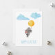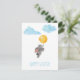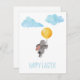 Coelhinho de aquarela com balão e nuvens cartão postal de Páscoa.