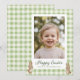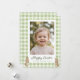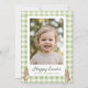 Celebre a Páscoa com um toque doce e pessoal com este cartão de foto de Feliz Páscoa, apresentando um design de xadrez em aquarela verde suave e adoráveis detalhes de coelhinho bebê. A frente inclui uma grande moldura para sua foto favorita, e a saudação "Feliz Páscoa" e a linha do remetente são personalizáveis, tornando-a uma maneira encantadora de enviar uma mensagem de Páscoa personalizada para familiares e amigos.