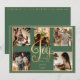 “Alegria” em belo texto dourado falso. Fundo verde sazonal. Adicione as fotos da sua família favorita para personalizar. Altere os nomes e o ano, seu nome e um belo cartão de Natal. Elegante. Tão simples, porém sofisticado.