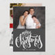 Celebre a temporada com este clássico cartão com fotos "Feliz Natal". Apresentando um elegante roteiro branco sobre um sofisticado fundo de cinza, este design é perfeito para mostrar sua foto favorita da família. Adicione seu nome de família a um toque personalizado e crie um cartões de natal memorável que trará calor e alegria aos amigos e entes queridos. Com espaço de fotos adicional no verso, este cartão é ideal para compartilhar seus queridos momentos de feriado e enviar melhores desejos para a estação.