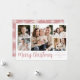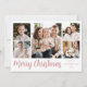 Cartão com fotos moderno de férias com 5 fotos favoritas organizadas em um layout de colagem. Sua saudação personalizada aparece em um roteiro elegante de rosa empoeirado com seu nome de família e o ano exibido à direita. A placa se inverte para exibir um padrão de floco de neve branco e rosa-rosa.