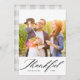 Sua foto foi emparelhada com um roteiro elegante e moderno de caligrafia que diz "Obrigado". Personalize com suas próprias fotos, nome e texto. A parte traseira apresenta uma cinza e um padrão de verificação de bufalos brancos de aquarela para um toque especial extra. Visite o compro para ver mais Cartões com fotos de Férias de Ação de Graças.