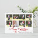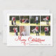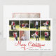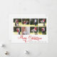 Cartão de Natal da Caligrafia de Natal Red Merry Colage. Um design adorável que inclui uma colagem de oito famílias e o texto "Feliz Natal" em caligrafia vermelha. A parte traseira apresenta mais uma foto e você pode adicionar sua mensagem.