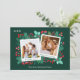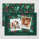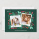 Este cartão de Natal de colagem de fotos da família apresenta duas modelos instantâneas para você inserir suas fotos, com um fundo de folhagem de cor d'água pintada manualmente, como holly, bagas, folhas verdes e florais vermelhos. No verso está um padrão com os mesmos elementos pintados em vermelho e verde. Você pode personalizar todos os detalhes neste cartão. Veja toda a coleção correspondente.