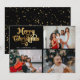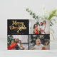 Envie o festival com um Cartão de Colagem de Fotos de Natal Preto e Dourado! Apresentando um roteiro de vídeo em tons de ouro e um fundo preto elegante, este cartão exibe lindamente fotos favoritas da família. É a mistura perfeita de elegância clássica e visões modernas, fazer-a como um eterno guardião para os entes queridos. Personalize com fotos e um nome de família para criar um cartões de natal único!