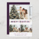 Cartões com fotos de Natal Merry, roxos, personalizados, com uma colagem fotográfica com um título decorativo e luzes de Natal na frente e fundo roxo escuro com neve caindo nas costas. Personalize facilmente esses Cartões de foto de Natal roxos e mauve com suas imagens, um nome de família e o ano.
