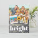 Crie seu próprio cartão de Natal personalizado com colagem de fotos da família neste outono / inverno. Você ama girassóis e bagas de azevinho vermelhas? Seus amigos e familiares vão adorar ver seus rostos sorridentes em um modelo floral tão brilhante e alegre. O design exclusivo em aquarela apresenta uma madeira cinza rústica country iluminada com luzes de corda elegantes e brilhantes na frente, enquanto o verso retrata um cervo de vime luminoso com chifres e um laço xadrez, ao lado do pequeno Rudoplho, o renascer de nariz vermelho. Sob seus cascos há mais luzes festivas de Natal sobre uma camada de neve branca e pétalas de girassol amarelas. Substitua facilmente as quatro imagens com suas próprias fotos da família (3 na frente, 1 no verso), e faça outras alterações simples, como estilo de tipografia e cores de fundo. A mensagem "alegre e brilhante" pode ser alterada para outra coisa, e é claro, não se esqueça de adicionar o nome da sua família e o ano no final. Você também pode adicionar sua própria mensagem de Natal no verso. Quer mudar as cores de fundo? Selecione entre diferentes tons de madeira (essas camadas podem ser reveladas se você personalizar ainda mais o design). Feliz Natal e Ano Novo, e divirta-se criando seus próprios cartões de Natal personalizados boho de girassol! Categoria: cartões de Natal de madeira botânica; cartões de Natal com colagem de 4 fotos; e cartões de Natal vintage. Tema