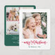 Envie saudações alegres e na moda e compartilhe 5 de suas fotos favoritas com uma colagem de fotos personalizada festiva Cartão de Natal Feliz. Este modelo é simples de personalizar e as cores vermelho, branco e verde-amora brilhantes podem ser alteradas com a ferramenta Editor Design do Zazzle. O moderno design minimalista apresenta um roteiro de "natal alegre" com uma fita e um arco bonitos e um "presente" de colagem de fotos quadradas atrás. A família e os amigos adorarão mostrar este cartão elegante e colorido. Feliz Natal!