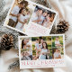 Celebre a temporada com o moderno Elegante Red Merry Photo Collage Holiday Card. Este design de na moda apresenta uma colagem de 5 fotos na frente, com 4 fotos quadradas em volta de uma foto maior no centro. "Feliz Natal" é exibido lindamente em letras vermelhas da moda em um fundo branco. Personalize com seu nome de família e ano para um toque pessoal. O verso oferece espaço para mais duas fotos e uma mensagem sincera. Perfeito para mostrar suas lembranças queridas de uma forma simples, mas elegante. Compartilhe a alegria dos feriados com este eterno fotométrico.
