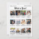 Comemore as festas com uma design de natal tipo "vintage", estilo um jornal, que transforma sua história familiar em notícias de primeira página. A frente apresenta a capa de notícias de Natal com espaço para uma grande foto, seu nome de família e uma mensagem de saudação personalizada abaixo. No verso, o layout "What a Year!" destaca doze seções personalizáveis de fotos — uma para cada mês — perfeitas para mostrar marcos, ocasiões especiais ou momentos do dia a dia. Com a sua tipografia retrô, detalhes desenhados à mão, e a estética nostálgica do jornal, esta design é uma maneira sensata e criativa de compartilhar alegria. Personalize com suas fotos, nomes e mensagens para manter o tesouro de todos.
