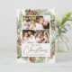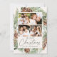 Cartão com fotos de férias elegante com uma camada aquosa de pínus cones, pinheiros compridos e verde esmagado com fundo de creme leve. "Feliz Natal" aparece em letras verdes escuras. Personalize a frente do cartão de feriado pine cone com 4 fotos e nome da família. A placa reverte para exibir uma foto adicional com espaço para sua mensagem pessoal e nomes individuais.
