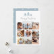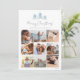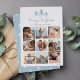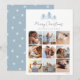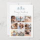 Compartilhe 9 fotos favoritas em um layout de colagem quadrada com este cartão com fotos de Natal moderno, com o "Feliz Natal" no topo da tipografia de scripts escritos, com um trio de ilustrações de pinheiros esboçados em azul pálido de inverno.