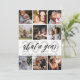 Cartão de Natal de Revisão do Ano com Colagem de Fotos da Família apresenta 9 fotos da família, texto caligráfico 'que ano' , ano e nome da família na frente. Personalize com sua mensagem / notícias da família no verso.