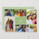 O cartão de colagem de fotos de na moda para os feriados apresenta seis (6) das suas fotos da família favorita do ano com o texto personalizado "Feliz Natal / Desejos Mais Quentes" e monograma. A parte traseira da placa inclui um padrão de faixas brancas diagonais. Nota, o fundo verde e as cores do texto podem ser modificados para coordenar com sua foto.