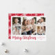 Cartão com fotos moderno de férias com 5 fotos favoritas organizadas em um layout de colagem. Sua saudação personalizada aparece em um script vermelho elegante com seu nome de família e o ano exibido à direita. A placa se inverte para exibir um padrão vermelho e branco do floco de neve.