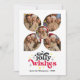 Envie alegria com este cartão de Natal inspirado no estilo retrô, apresentando um design divertido de “Desejos Alegres” e um layout exclusivo de colagem de múltiplas fotos. Perfeito para compartilhar seus momentos familiares favoritos, este cartão moderno combina tipografia nostálgica com estilo contemporâneo. Personalize com suas fotos e texto para criar um cartão de Natal único que seus entes queridos irão guardar.