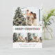 Cartões com fotos de Natal Merry e vermelho personalizados com colagem de fotos com um título decorativo e luzes de Natal na frente e fundo verde-escuro com neve caindo nas costas. Personalize facilmente esses Cartões de foto de Natal vermelhos e verdes com suas imagens, um nome de família e o ano.