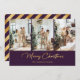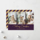 Púrpura de luxo e folha de ouro Feliz cartão com fotos de Natal com cartões de natal de caligrafia e colagem fotográfica na frente e listras elegantes e neve caindo nas costas. O efeito da folha de ouro só é simulado no trabalho de arte. Personalize facilmente este cartão de Natal com as suas fotografias e texto.