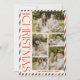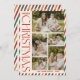 Personalize esta "Photo Collage Merry Christmas Arch Retro Stripes Holiday Card" (Cartão de Férias de Natal Feliz) com uma colagem especial com um casal e um bebê na frente da placa e uma foto da família enquadrada em um formato de arco único na parte traseira da placa de saudação, fazer a sua placa de um tipo. Um clássico design de feriado: um vibrante fundo vermelho, verde e ouro diagonal de risca traz uma sensação nostálgica mas eterno festiva, apresentando sua mensagem de Natal com as palavras "Feliz Natal" na tipografia moderna, acrescentando um talento retrô divertido às suas saudações. Este cartão de férias é a forma perfeita de enviar alegria de férias com um toque pessoal! Entre em contato com o designer da loja para mais personalização, se necessário.