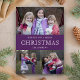 Envie seus família e amigos um cartão de Natal roxo bonito do tema com suas fotos de família favoritas. Lance o cartão sobre para revelar um teste padrão bonito dos flocos de neve na parte de trás do cartão.