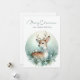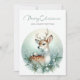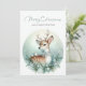 Celebre a temporada com este cartão de Natal tranquilo, apresentando um cervo gentil adornado com um floco de neve e uma gola de folhagem de inverno, cercado por galhos de pinheiro, frutos brancos e flocos de neve caindo suavemente. Um delicado pássaro branco empoleirado em suas costas adiciona um toque de alegria, enquanto o fundo gradiente azul pálido evoca uma floresta de inverno serena. A graciosa saudação "Feliz Natal e um Ano Novo Feliz" completa esta cena tranquila, perfeita para enviar calor e maravilha.