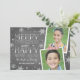 Este cartão de Natal diz "Feliz Natal e Feliz ano novo" na tipografia da na moda, com flocos de neve desenhados à mão e um fundo de quadro. Apresentando duas de suas fotos. Personalize com suas próprias fotos e texto para um cartão de na moda feriado que é tudo seu. Vem com um padrão de floco de neve correspondente no verso.