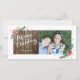 Adicione um toque festivo extra aos seus cartões de natal este ano com este cartão com fotos de 1 foto, com letras portáteis e folhagem desenhada à mão, tudo sobre um fundo de madeira rústico. Disponível em várias cores.