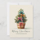 Our wonderful little Christmas tree in a rustic wood pot is cute as can be and is so darling for the holiday season. We love the colorful bows and ribbons. It is done in watercolor of vintage origin, but you wouldn’t know it because it looks so modern and trendy. We hope you love it and will enjoy sending this “Merry Christmas” flat holiday card to your relatives and friends this wintertime.