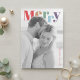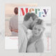 Send joyful holiday greetings with this modern and colorful photo card design. The front features the bold word “Merry” in a stylish multicolor serif font above your personal photo, creating a bright and cheerful contrast against the soft black-and-white background. Perfect for sharing your family’s warmth and love this season, the back includes space for a full holiday message, names, and the year. A chic and minimal design that celebrates the season in a fresh, modern way.
