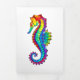 Articulação artificial, brilhante, arco-íris, cavalo de mar poligonal sobre fundo branco. Tatuagem brilhante.