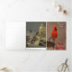 Cartão de Natal Trifoliar com Cardinal do Norte, Bico-de-lacre Pintado e cena de Inverno nevado.