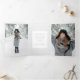 Design moderno minimalista e elegante com modelo de quatro fotos com quatro linhas de texto editável para suas saudações pessoais na frente. O dentro apresenta modelos de fotografia adicionais, campos de texto e um plano de fundo branco e padrão de desenho de cinza simples e limpo.