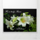 Lindos lírios brancos de Páscoa falam de nova vida e da Ressurreição de Jesus, um design apropriado para este lindo cartão de Páscoa. Samambaias verdes frescas fazem um contraste delicado com o fundo escuro que enfatiza o brilho dos lírios. A foto dos lírios é bordeada por uma borda branca crocante e tem uma leve sombra ao redor, dando a ilusão de dimensão.