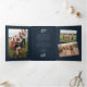 Um cartão fotográfico elegante, com galhos de pinheiro desenhados à mão, numa paleta festiva de cor azul-prata e marinho desenhada por Stacey Meacham. Placas triplas são uma forma excelente de enviar cartões de natal. Eles permitem mais espaço para fotos e mensagens mais longas. O seu cartão é, com certeza, um sobressalto.