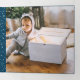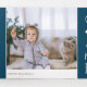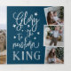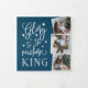 Adicione um total de seis fotos a este belo design de cartão com fotos de feriado religioso em um layout triplo único, enfeitado com estrelas e com tipografia manuscrita. Frente guarda três fotos quadradas com "glória para o rei recém-nascido" em tipografia de guião branco, escrita à mão sobre fundo azul. Personalize o dentro com uma mensagem pré-impressa personalizada ou uma carta de atualização "ano em revisão".