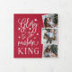 Adicione um total de seis fotos a este belo design de cartão com fotos de feriado religioso em um layout triplo único, enfeitado com estrelas e com tipografia manuscrita. Frente guarda três fotos quadradas com "glória para o rei recém-nascido" em tipografia de guião branco, escrita com letra branca, sobre um fundo vermelho festivo. Personalize o dentro com uma mensagem pré-impressa personalizada ou uma carta de atualização "ano em revisão".