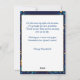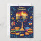 Apresentando o "Cartão de Celebração do Festival das Luzes"! Este vibrante cartão de saudação Hanukkah é perfeito para espalhar alegria e calor durante o feriado. A design da frente apresenta uma saudação alegre de "Feliz Chanucá!" em letras ousadas e festivas. Abaixo, uma mensagem emocionante, "Brilhar nesta temporada de festas!" adiciona um toque de inspiração. A peça central é uma bela menorah ilustrada com todas as velas acesas, cercada por símbolos tradicionais de Chanucá como sonhos e suganítes, todos colocados contra um fundo azul profundo adornado com estrelas cintilantes. Você pode torná-lo exclusivamente seu com texto personalizado tanto na frente quanto no verso, adicionando um toque pessoal aos seus cartões de natal. Esta carta é uma forma deliciosa de celebrar o Festival das Luzes e compartilhar o espírito festivo com os entes queridos. 🌟 🕎