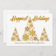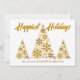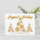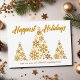 Um cartão de férias da empresa de guiamento de ouro chic com 3 árvores bonitas feitas de flocos de neve ouro abaixo de Feriados Happiest escritos em guião cursivo. Adicione o nome da sua empresa abaixo. Personalize com uma mensagem corporativa no verso para cartões de natal de floco de neve do marketing cliente.