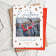 Cartões com fotos de feriado personalizados modernos com um modelo DIY simples para personalização. Este design minimalista de chic tem uma cobertura de ponto confetti com aparência de bobina de cobre. Adicione a foto da sua família, saudações pessoais, nomes e o ano. Use as ferramentas de design para editar as fontes e as cores. O verso tem espaço para adicionar mais fotos e texto.