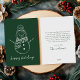 Espalhe o espírito natalino com estilo com este cartão de Natal incrivelmente simples, porém elegantemente desenhado. Este cartão de Natal moderno destaca lindamente a essência da época, apresentando uma silhueta de boneco de neve limpa e minimalista apresentada em uma tonalidade verde escuro profundo. O contraste marcante do design chama a atenção enquanto incorpora a calidez e a alegria do Natal. Seja para entrar em contato com familiares, amigos ou colegas, este cartão serve como uma maneira sofisticada e atenciosa de espalhar a alegria natalina. É perfeito para transmitir votos calorosos e criar memórias duradouras durante esta época festiva. Faça com que seus cumprimentos de Natal sejam memoráveis com este cartão requintado, projetado para trazer um sorriso ao rosto de todos os destinatários.
