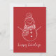 Cartão De Festividades Contorno de Boneco de Neve Simples Vermelho Brilha