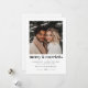 Este cartão de Natal é projetado para recém-casados que celebram seu primeiro Natal casados, combinando simplicidade moderna com charme sazonal. Ele apresenta uma foto quadrada que você pode carregar para mostrar seu momento favorito juntos. A frase "feliz e casado" em um design tipográfico ousado é acompanhada por um coração delicado ao lado. Abaixo dela, seus votos de Natal personalizados são exibidos de forma elegante em duas fontes complementares, juntamente com o ano na parte inferior, criando um presente atemporal.