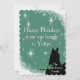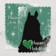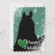 Um design de fundo estrelado verde com a silhueta preta de um cavalo e um coração verde. Personalize com seu cumprimento de férias pessoal, mensagem e assinatura. O cartão de férias perfeito para o amante de cavalos!