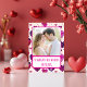 Adicione um toque de brilho e humor aos seus votos de férias com o cartão de Natal de foto "Corações Roxos Brilhantes - Compartilhe Minhas Fritas". Com um design de corações roxos brilhantes e a mensagem divertida "Eu compartilharia minhas fritas com você. Isso é amor", este cartão é perfeito para casais e famílias que valorizam momentos leves e sinceros. Personalize-o com sua foto favorita para torná-lo um presente verdadeiramente único que espalha alegria nesta época de festas.