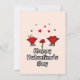 Corações vermelhos fofos casal com rosa vermelha para o Dia dos Namorados em fundo rosa claro