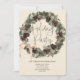 Uma coroa natural encabeça este convite de festa de férias em estilo boho.