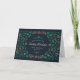 Este design apresenta uma coroa festiva feita de azevinho, frutos e várias folhagens de inverno. A ousada folhagem e os acentos vermelhos sobressaem contra um fundo escuro, cercando uma mensagem sincera de alegria natalina e votos para um Ano Novo maravilhoso.