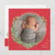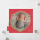 O design de cartão de Natal de festas temáticas apresenta folhagens pintadas à mão em aquarela em uma coroa de círculo dourado posta em um fundo vermelho de Natal. Sua imagem é emoldurada de forma simples e o design é acentuado com manchas douradas de aquarela e bagas de azevinho correspondentes. #Natal #Feriados #CartõesDeNatal
