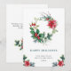 Cartão De Festividades Coroa de Natal de Poinsettia de Azevinho Festivo
